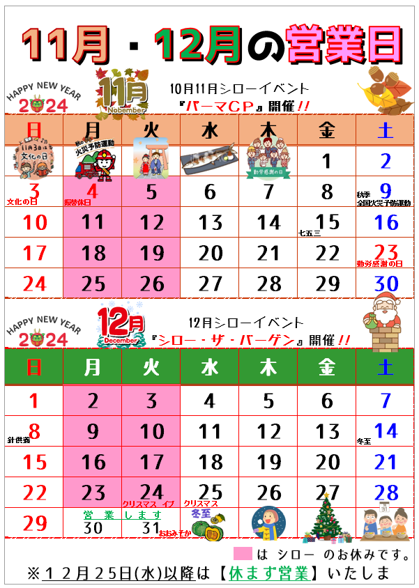 11月も盛りだくさんのシローです