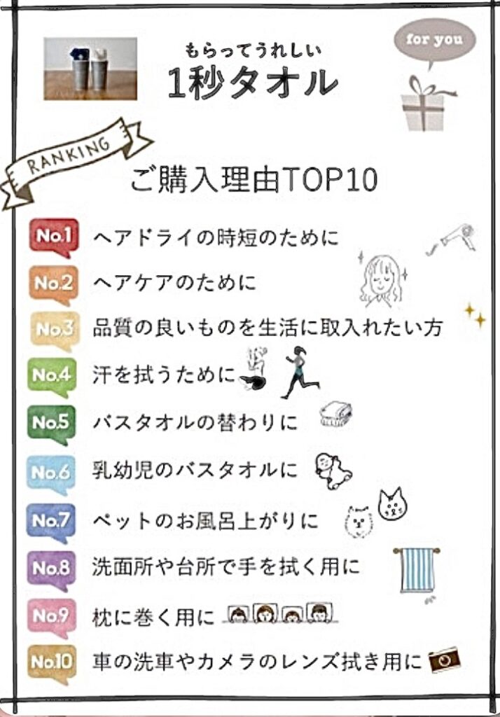 全国のサロンに通うお客様が1秒タオルを購入した『購入理由ランキング』をまとめたものです!