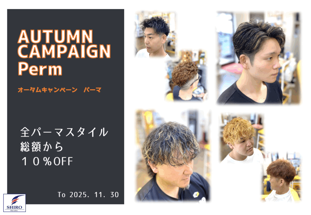 HOME ヘアサロン シローについて メニュー ご利用の流れ お問い合わせ Blog 10月の営業 【10月の営業日】です🎃暑さが徐々に弱まり秋らしくなってきました10月はハロウィン、紅葉狩り、十五夜、イベント目白押し🍁✨ですがシローも負けてません!今月は『パーマキャンペーン』です🧑🦱全パーマスタイルから【5%OFF】させていただきます!新しい自分に挑戦してみませんか?シローにそのお手伝いさせてください!いつでもお待ちしております😊 2025年10月1日 « 前の記事へ 次の記事へ » 最近の投稿 2026 シローガラポン大抽選会 ʜᴀᴘᴘʏ ɴᴇw ʏᴇᴀʀ̆̈ ⛩ 2025ありがとうございました🐍✨ *↟⍋*↟𝑀𝑒𝑟𝑟𝑦 𝐶ℎ𝑟𝑖𝑠𝑡𝑚𝑎𝑠*↟⍋*↟ クリスマスが今年もやってくる𓍄𓂃𓈒* アーカイブ 2026年1月 (2) 2025年12月 (7) 2025年11月 (12) 2025年10月 (5) 2025年9月 (2) 2025年8月 (2) 2025年7月 (1) 2025年6月 (2) 2025年5月 (1) 2025年4月 (2) 2025年3月 (1) 2025年2月 (2) 2025年1月 (4) 2024年11月 (2) 2024年10月 (4) 2024年9月 (1) 2024年8月 (1) 2024年5月 (2) 2024年4月 (1) 2024年3月 (1) 2024年2月 (2) 2024年1月 (1) 2023年12月 (4) 2023年11月 (2) 2023年10月 (1)