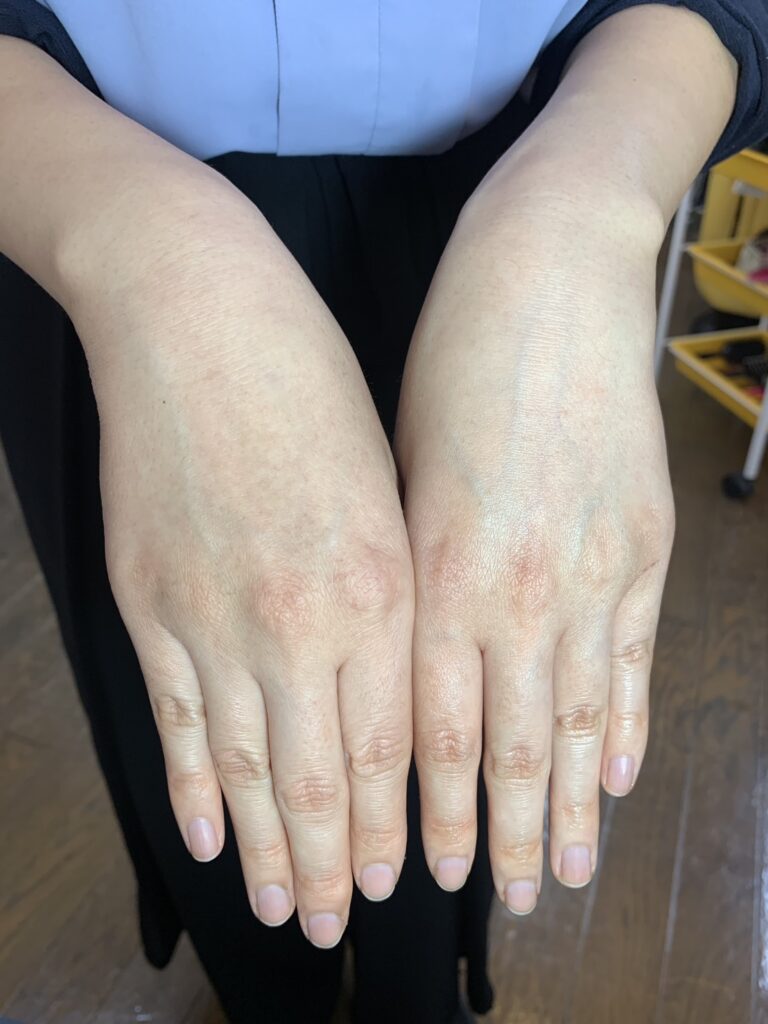 お顔だけでなく全身に使えるので左手に使ってみました!